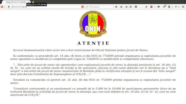 Pe 12 iunie 2015 fost promulgată Legea nr. 124/2015 care aduce modificări Ordonanței de Urgență a Guvernului nr. 77/2009 privind organizarea și exploatarea jocurilor de noroc. Articolul 10(7) stipulează: „[...] Furnizorii de rețele și servicii de comunicații electronice [...], sunt obligați să respecte deciziile Comitetului de Supraveghere al O.N.J.N. referitoare la restricționarea accesului către site-urile de jocuri de noroc neautorizate în România, precum și cele referitoare la reclama și publicitatea acelor jocuri de noroc organizate de către un operator de jocuri de noroc nelicențiat în România”.