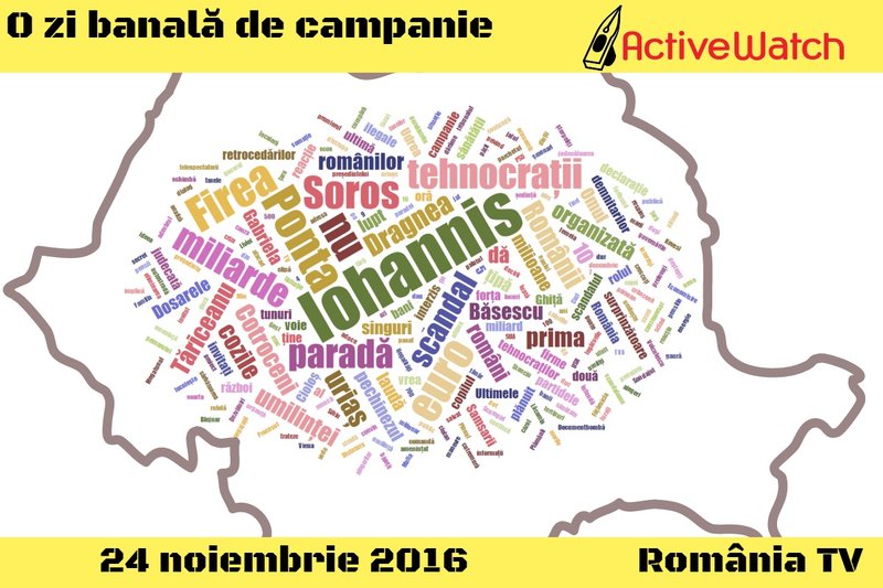 ActiveWatch, în calitatea sa de organizație care apără dreptul la libertatea de exprimare și informare corectă, face un apel către membrii Consiliului Național al Audiovizualului să ia măsuri urgente și ferme față de maniera în care postul România TV a ales să mediatizeze desfășurarea campaniei electorale pentru alegerile parlamentare din 11 decembrie 2016.